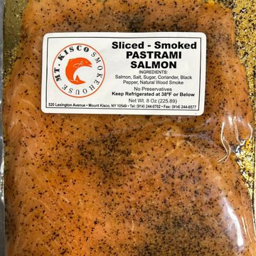 Prepacked smoked pastrami salmon Scotch style features a unique flavor that combines the rich, savory notes of smoked salmon with the distinctive spices typically associated with pastrami. Expect a robust and slightly peppery taste, with hints of garlic, coriander, and sometimes a touch of sweetness, contributing to a flavorful and aromatic experience.