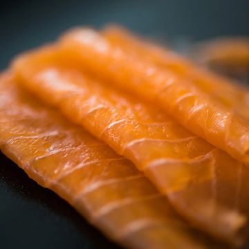 Hand-sliced smoked salmon Nova style boasts a delicate, mild flavor that is subtly sweet and aromatic, with a hint of brininess that allows the fish's natural richness to shine. Its silky, smooth texture is tender yet firm, with thin slices that can be easily layered, offering a luxurious mouthfeel.